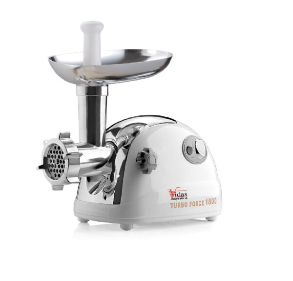 چرخ گوشت ویداس مدل VIDAS VIR3505 دارای توان 1800 وات است. یکی از شاخصه های دستگاه که در بسیاری از کالاهای مشابه وجود ندارد، دو گزینه سرعت دستگاه است. شما میتوانید با فشردن یک کلید روی بدنه دستگاه میزان سرعت آن را مشخص کرده و خودتان انتخاب کنید که با چه سرعتی گوشت را چرخ کنید. در صورتی که گوشت انتخابی شما بافت سفتی دارد و یا اینکه گوشت ترکیبی را پرچربی استفاده میکنید، بهتر است اجازه دهید که دستگاه با سرعت کم و به آرامی گوشت را چرخ کند. اما اگر عجله دارید، میتوانید سرعت تند را انتخاب کنید. چرخ گوشت ویداس مدل VIDAS VIR3505 دارای بدنهای از ترکیب پلاستیک و فلز ضد زنگ است که دوام و مقاومت بالایی دارد و از طرفی تمیز کردن و تمیز نگاه داشتن آن هم آسانتر است.