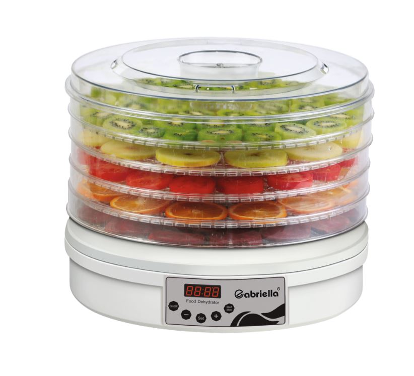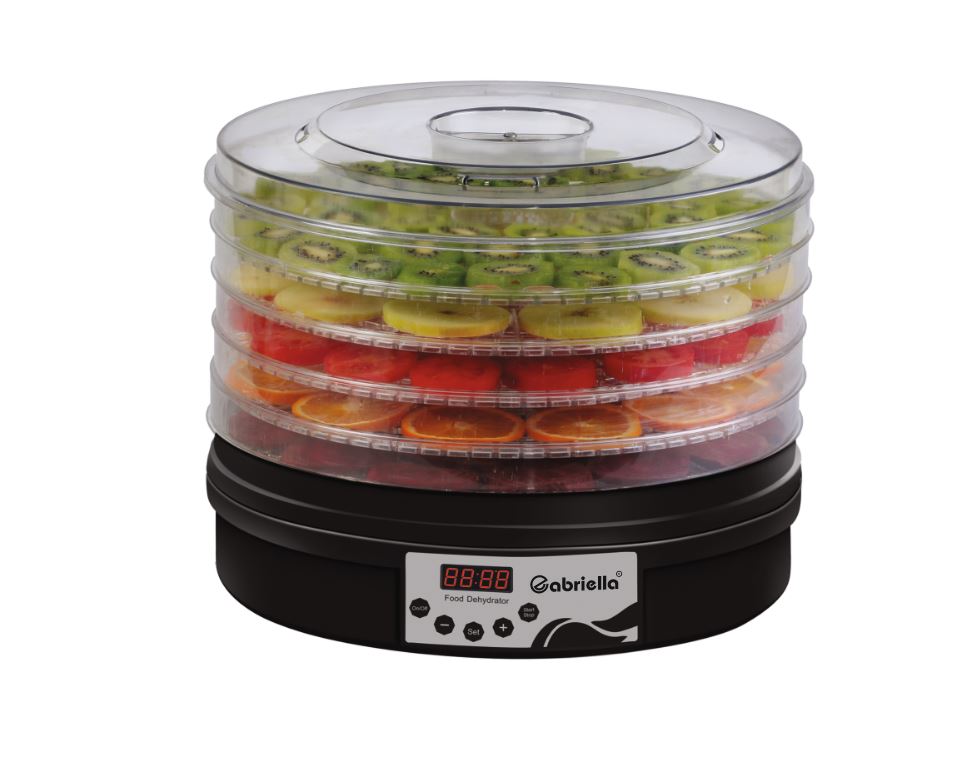 میوه خشک کن گابریلا AM-1419 با داشتن پنج طبقه جدا شدنی، به شما اجازه می دهد در یک بار عملیات، میوه های مختلف را به صورت همزمان خشک کنید. این طبقه ها شفاف هستند و امکان مشاهده فرآیند خشک کردن بدون باز کردن درب دستگاه را می دهند. قطعات قابل شستشو باعث می شوند نگهداری و نظافت دستگاه بسیار ساده باشد و به حفظ بهداشت میوه های خشک شده کمک می کند.