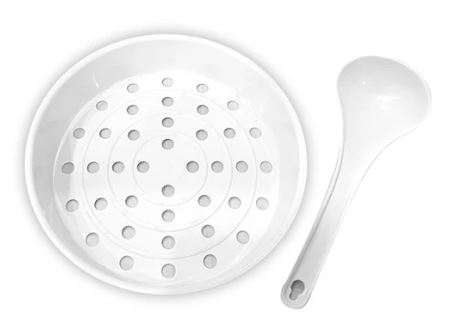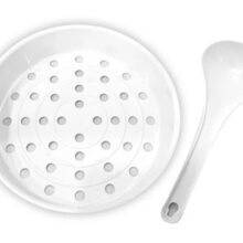 اقلام همراه سبد بخارپزی، کابل برق، پیمانه برنج، کفگیر، ملاقه
