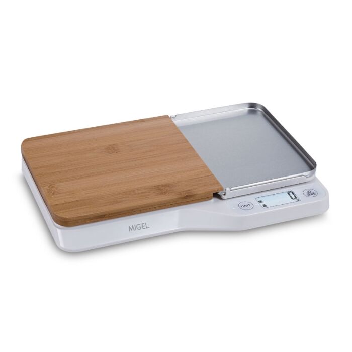 ترازوی آشپزخانه الکترونیکی میگل مدل GKS 509 با صفحه وزن کشی از جنس استیل ضد زنگ به همراه تخته برش قابل جدا شدن در جهت سهولت در نظافت، وسیله ای فوق العاده جهت سنجش میزان وزن مواد تا 5 کیلوگرم، می باشد.