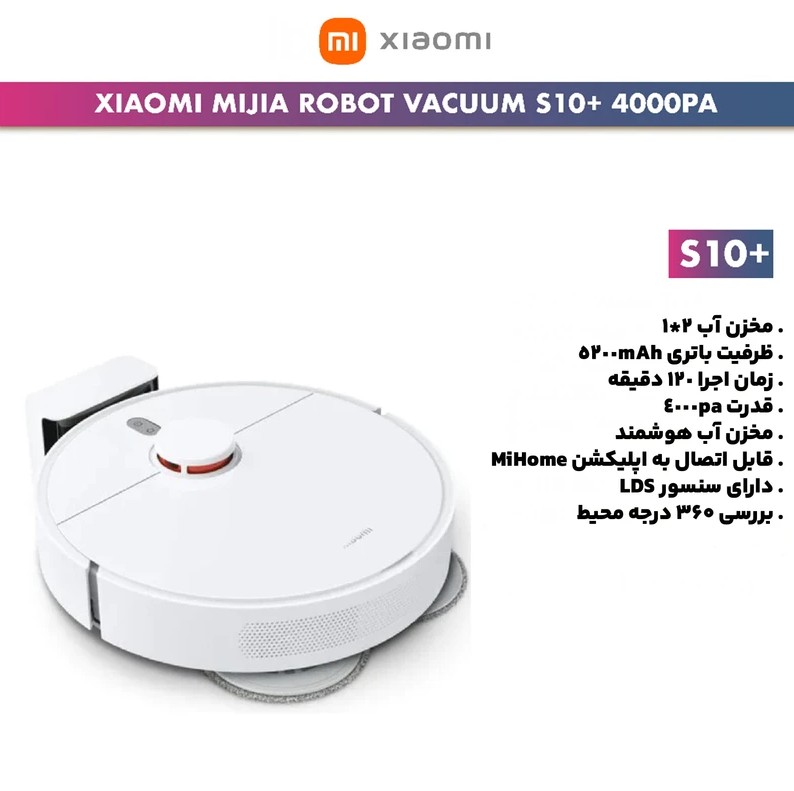 جارو رباتیک شیائومی S10+ یک ربات جاروبرقی پیشرفته است که با استفاده از سنسورهای لیزری LiDAR مسیرهای دقیق و بهینه سازی شده ای در منازل ایجاد می کند. این ربات قادر است مساحت تا 200 متر مربع را در هر بار شارژ پوشش دهد و با زمان شارژدهی 120 دقیقه، توانایی کار مستمر برای ساعت ها را دارد. ظرفیت باتری 5200 میلی آمپر و زمان کامل شارژ 360 دقیقه، این ربات را برای استفاده در خانه های بزرگ و حتی آپارتمان های کوچک ایده آل می کند.