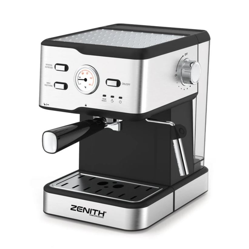 Espresso coffee maker EMZ1441 کنترل پنل دکمه ای همراه با فشارسنج پمپ ایتالیایی (Italy) با تحمل فشار 20 بار مخزن آب شفاف با ظرفیت 1.5 لیتری مخزن آب قابل جدا شدن دارای بویلر ریخته گری شده از جنس آلیاژ آلومینیوم دارای نگهدارنده فیلتر از جنس آلیاژ آلومینیوم فیلتر ضد زنگ برای بهبود کیفیت قهوه دارای فیلتر دو فنجانی دارای نازل کف قابل جدا شدن محافظ در مقابل گرما و فشار بیش از حد دارای صفحه گرم نگهدارنده فنجان به منظور پیش گرمایش دارای سیستم کاپوچینوساز و اسپرسوساز قابلیت تهیه انواع نوشیدنی های برپایه قهوه مثل کاپوچینو، اسپرسو، لاته، موکا، آمریکانو و … طراحی و تکنولوژی آلمان است