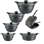 سایر توضیحات | - قابلمه شماره 1 به قطر 18cm - قابلمه شماره 2 به قطر 20cm - قابلمه شماره 3 به قطر 24cm - تابه دو دسته به قطر 24cm |